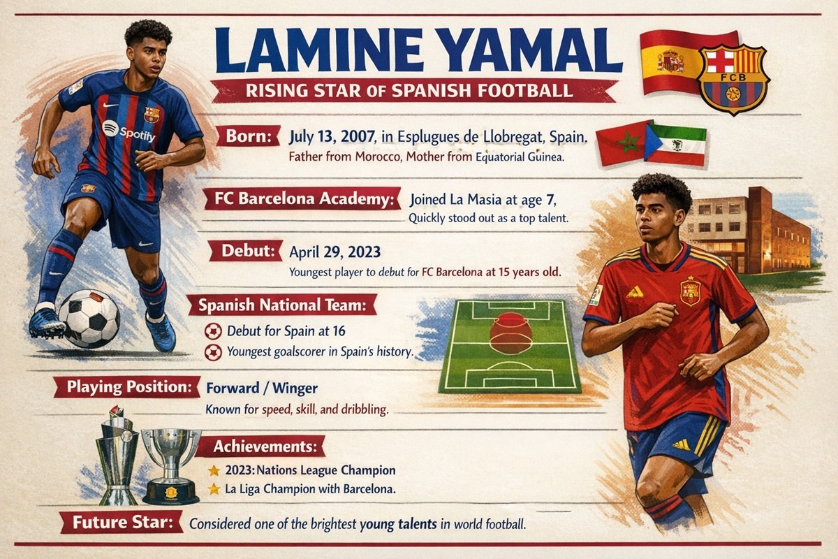 Tags: Barcelona PlayersFootball Player BiographyFootball RecordsLa Masia AcademyLamine YamalLamine Yamal AgeLamine Yamal BiographyLamine Yamal CareerRising Football TalentsSpain National Team PlayersSpanish FootballersYoung Football Stars